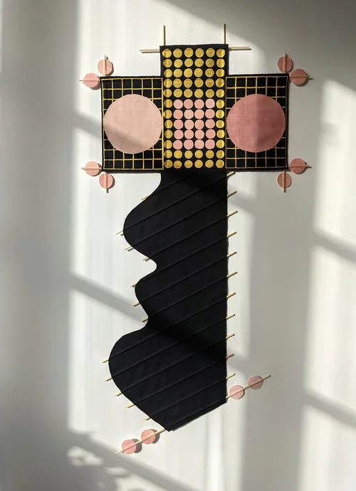Textile sculptures shown at the exhibition “Going elsewhere- material interpretations of the Chinese Pavilion” 2021.